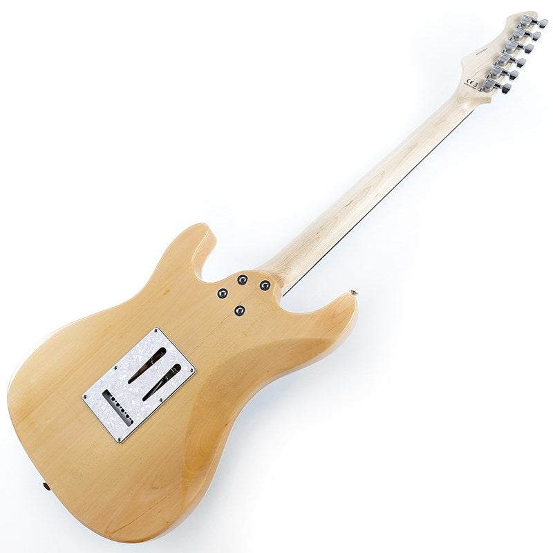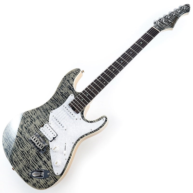 The Aria Evergreen is based on a standard style. It's a model developed with the hopes of providing a long-lasting, durable tone. It features a vibrant flame maple finish. The SSH pickup layout and coil tap switch allow for a wide range of sound creation.