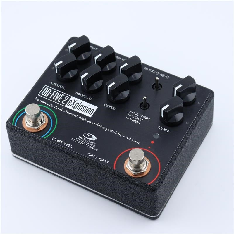 The OD-FIVE 2 eXplosion is a drive pedal inspired by the sound of modern high-gain amps and features two independent controls.