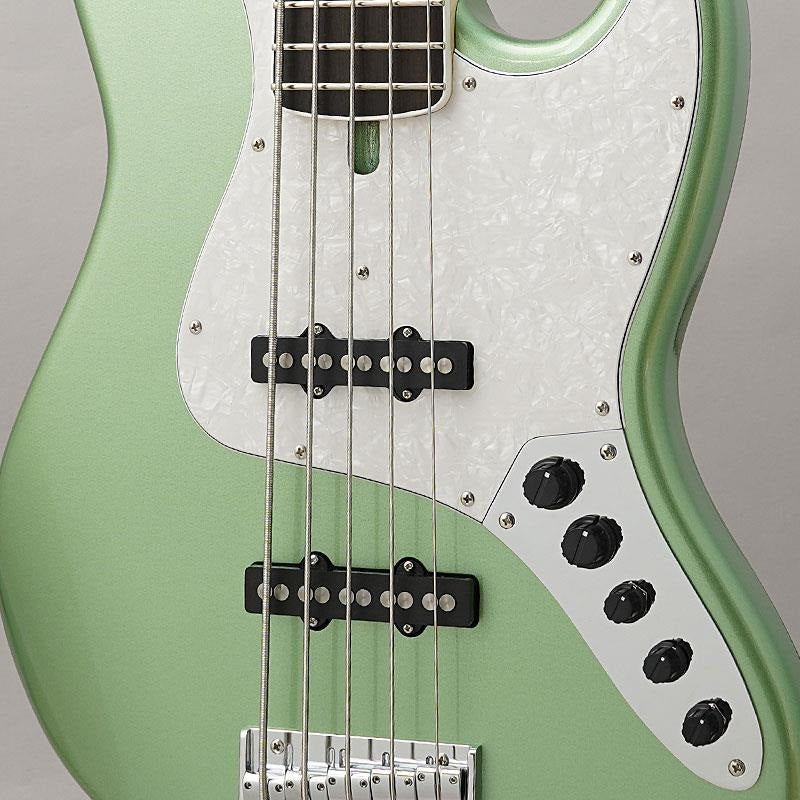 This model is a collaboration between our shop and Aki Kawano, a popular session player familiar from our Moon bass introduction video, and we've refined it to offer even more value for money. This is a custom-made version of Moon's standard 5-string active JB model, custom-finished to our specifications. The active model's default wood, ash, has been changed to alder. The standard ebony fingerboard and Bartolini XTCT preamp, along with Moon's own custom quarter-pound pickups, further enhance the bass' punch and richness. While maintaining a peak sound in the low and high ranges, it retains the brilliance of an active bass, while also providing a bold, clear sound that stands out in an ensemble. Combined with the playability of a JB-style model, this is a versatile model that will perform well in any genre or playing style.