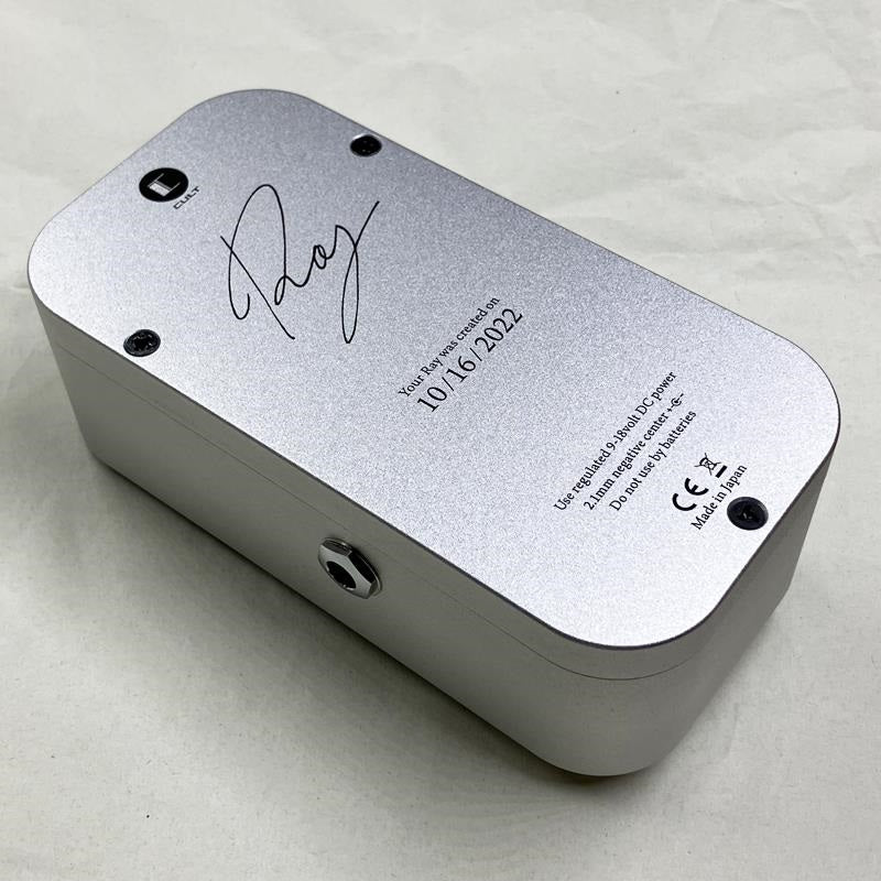 CULT's first original overdrive pedal, the Ray, doesn't aim to fit any existing sound category; instead, it aims to create a drive sound that combines delicacy and power, matching the image of the word Ray (a ray of light). It prioritizes touch response and fast attack, while also offering the opposing fatness, stickiness, and comfortable compression—a versatile, modern overdrive. The circuitry that achieves this is original for the Ray, and, despite the cliché, it doesn't belong to any particular genre.
