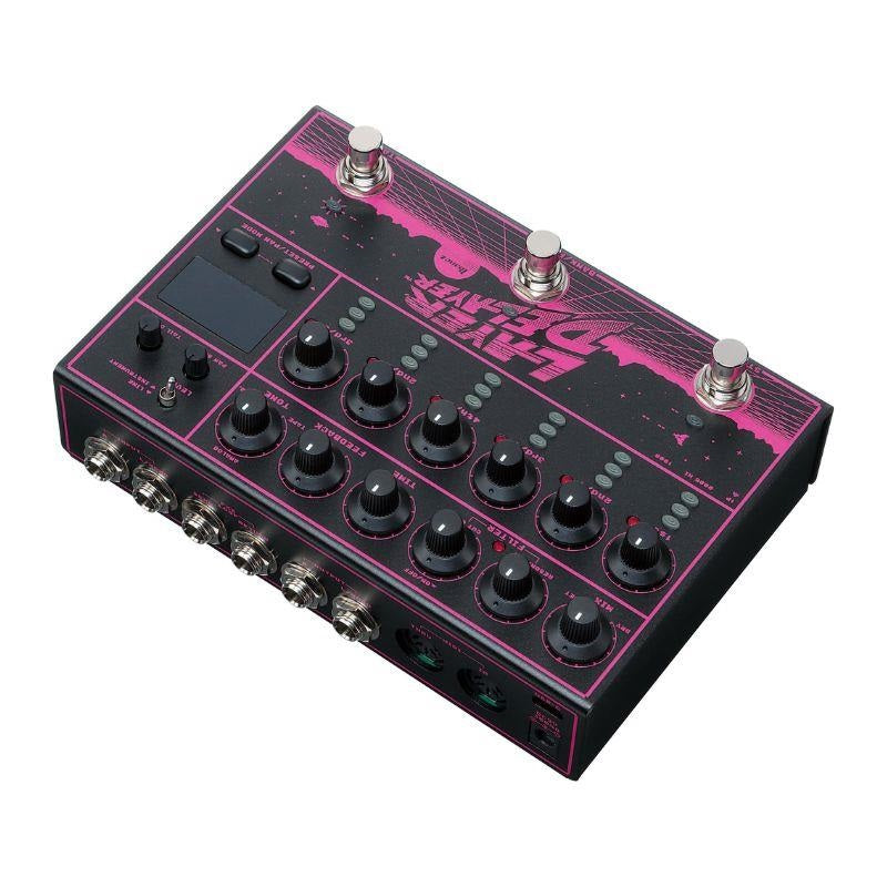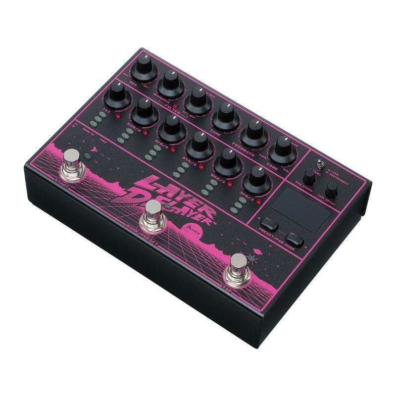 - Individual volume control for 16th note and triplet delay sounds - Equipped with Stereo In/Out, FX Loop located in the delay signal path, and MIDI In/Thru terminals - Simulates three types of delay sounds: digital, analog, and tape echo - Simulates a low-pass ladder filter - Features a Tail function to adjust the attenuation of the delay sound, 8 auto-pan modes, and a tap tempo footswitch - Includes 20 factory presets out of 50 presets - The latest firmware, updater, and Layer Delayer app can be downloaded from the link below.