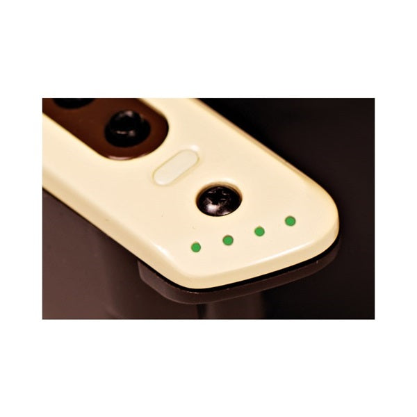 The battery checker button allows you to check the remaining battery level. When you press the button, four small green lamps light up to indicate the remaining battery level. This new function allows you to easily check the battery level at hand, making it convenient.