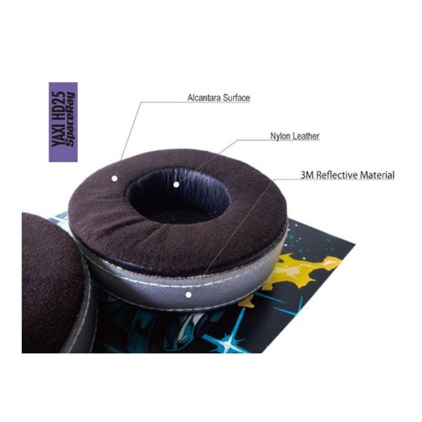 YAXI HD25 SpaceRay is a custom ear pad exclusively for the SENNHEISER "HD25" with 3M retroreflective reflectors (scotchlite 8935) stitched onto the sides of the pad.