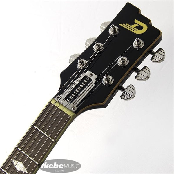 The Paloma, featuring a distinctive body shape, is now available from the prestigious German guitar manufacturer Duesenberg! Rare among Duesenberg models, the Paloma features a completely solid alder body with elbow cuts and waist contours. Its distinctive offset body shape and diamond inlays are a distinctive feature. The SSH pickup configuration is connected to a 4-way rotary switch with four positions: front, front + rear (tap), center + rear (tap), and rear. From bright, warm tones to rugged rock sounds, the Paloma offers flexibility for a wide range of musical styles.