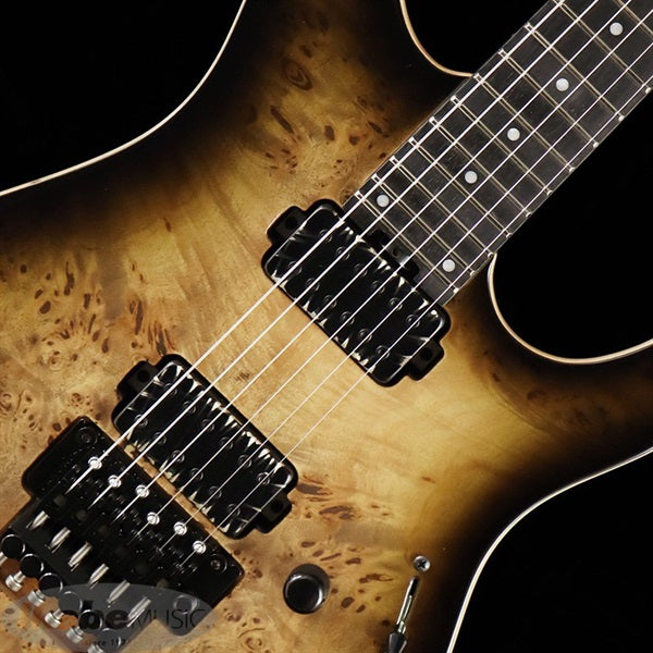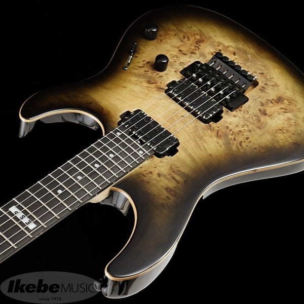 Introducing the SN-2, the successor to the ST series featuring the SNAPPER shape. The body features a laminated construction with a burl maple top and alder back. The neck is hard maple and the fingerboard is ebony. The neck is bolted to the body. It features Bare Knuckle AFTERMATH Battleworn pickups. The bridge is a locking Floyd Rose.