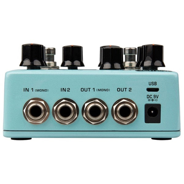 Connect a guitar to IN1 and connect OUT1 to IN2. By outputting from OUT2, you can connect two delays in series.