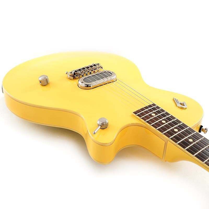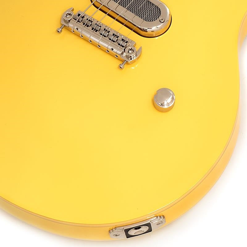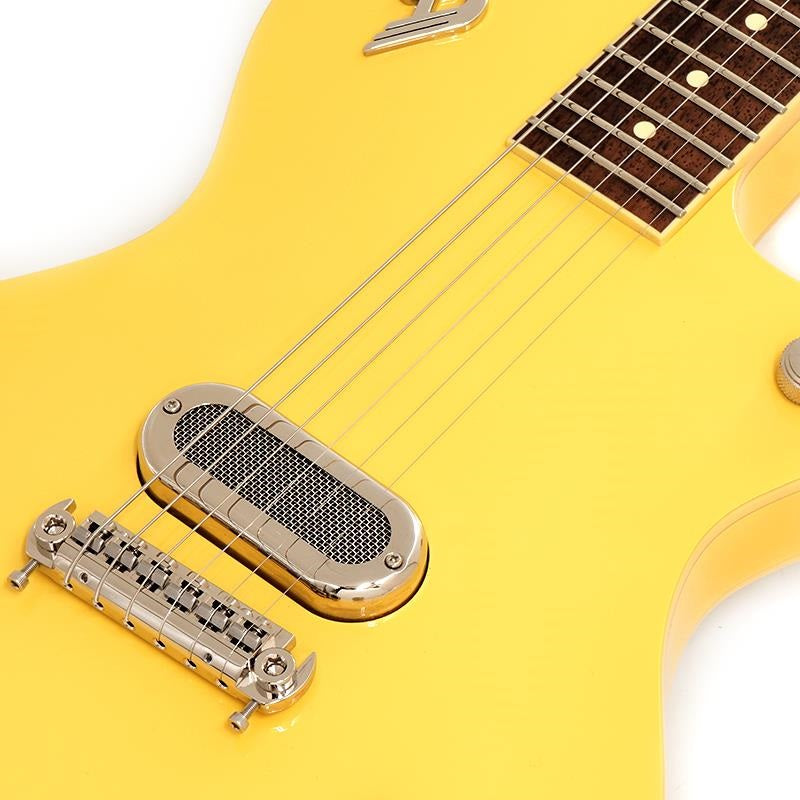 The Senior features a simple look, featuring a chambered body without a hole, a rarity among Duesenberg models, and a single Split/King pickup with a classic Phonico cover. The Split King duo-coil pickup, also featured in the 25th model, delivers a practical sound character that differs from coil tap or split pickups by allowing individual single-coil pickups to be used individually or mixed. The bridge is an original wrap-around design, providing excellent tuning stability.