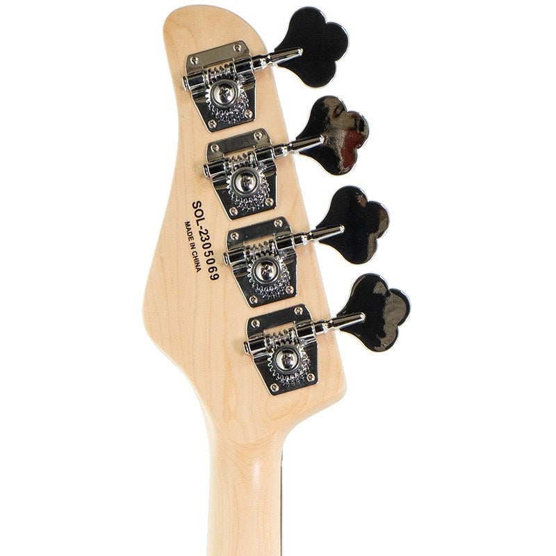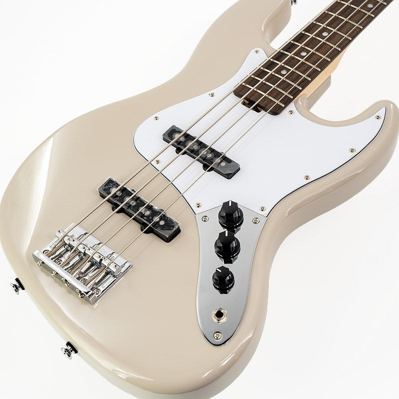 This JB-type guitar features a traditional alder body, maple neck, and rosewood fingerboard, producing a standard bass sound that's perfect for backing vocalists and rock bands. The body back joint gently slopes toward the neck, providing smooth playability even in the upper registers.