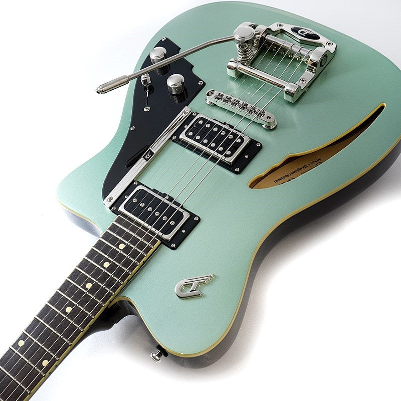 The solid alder hollow body and maple neck create a distinctive sound with a sense of airiness. The pickups are Duesenberg's signature Domino P-90 and Grand Vintage Humbucker. The simple one-volume, one-tone controls allow for intuitive sound shaping. This unique model, both in sound and appearance, is definitely worth a try!