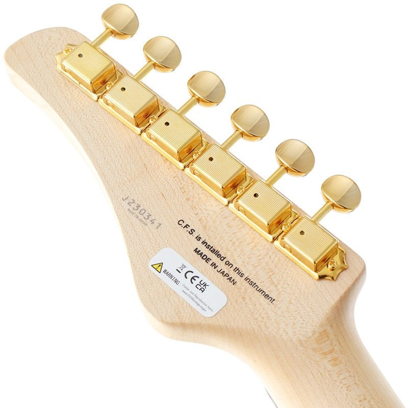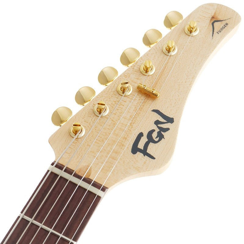 The lightweight ash body is a Fujigen-style arrangement of the ST type, with a flame maple top, maple neck, and rosewood fingerboard, all bolted together. The pickups are Fujigen original pickups in an SSH pickup layout, and the controls are user-friendly, with one volume, one tone, a 5-way selector, and a double tricky switch.