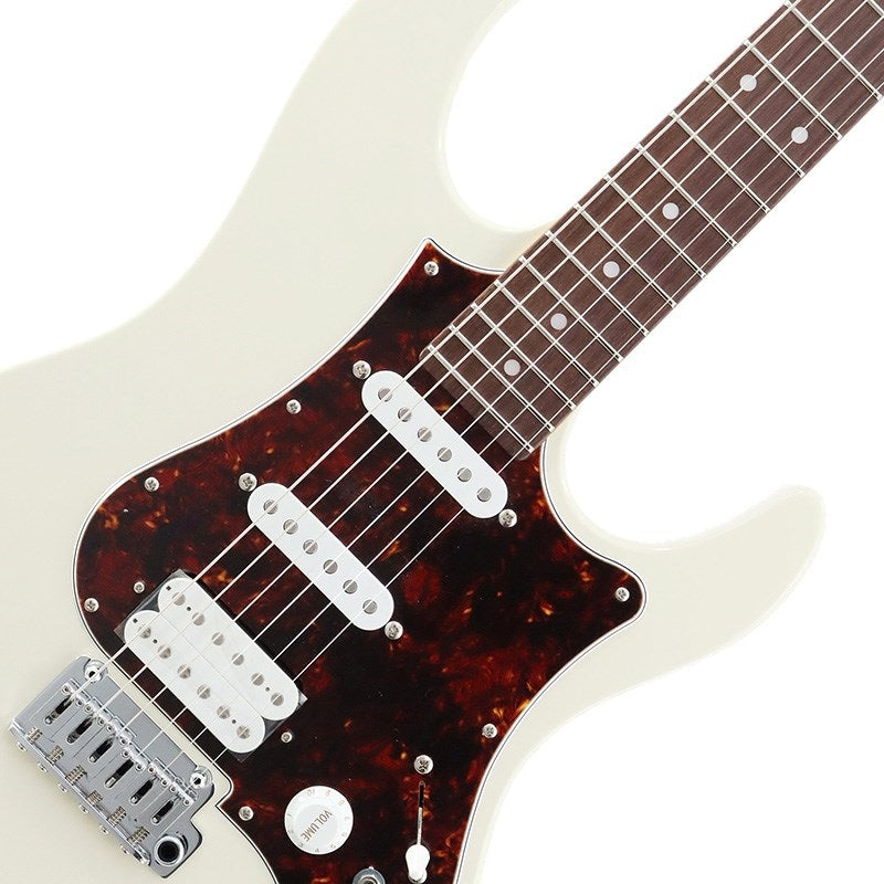 The ST-type alder body is a Fujigen-style arrangement, with a maple neck and rosewood fingerboard bolted on. The pickups are Fujigen original pickups in an SSH pickup layout, and the controls are user-friendly, with one volume, one tone, a 5-way selector, and a double tricky switch.