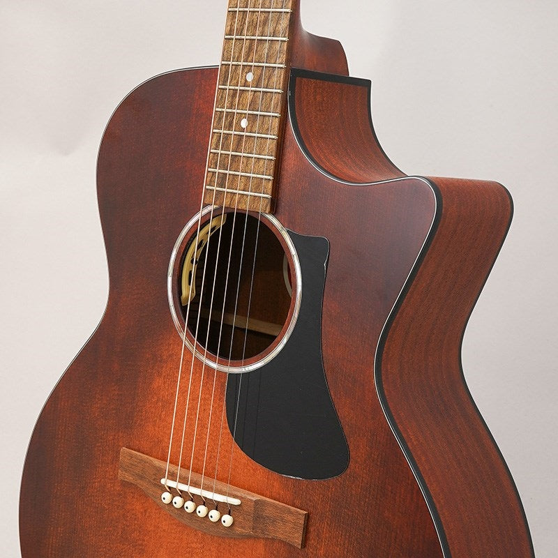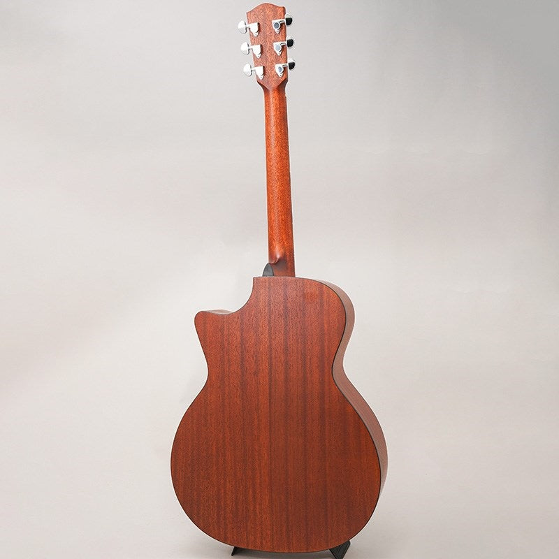 The Grand Auditorium body size, popular among fingerstyle guitarists, offers solid low frequencies and a comfortable fit.