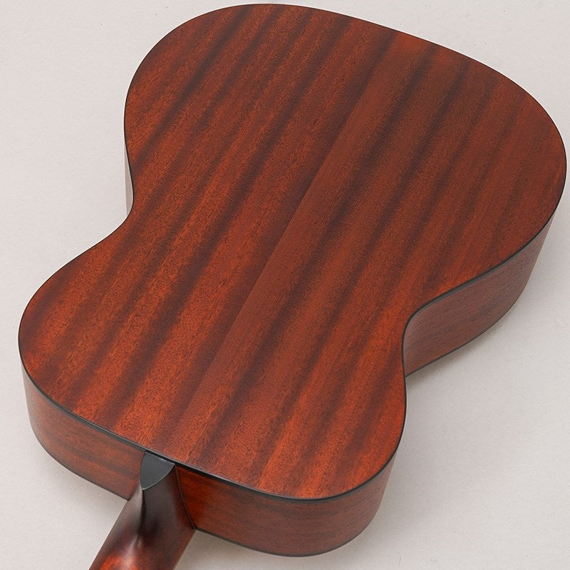 It features a torified solid Sitka spruce top, Sapele plywood back and sides that produce a rich midrange, a compact Triple O (000) body that is recommended for petite people and women, and a pleasant-to-the-touch satin finish.