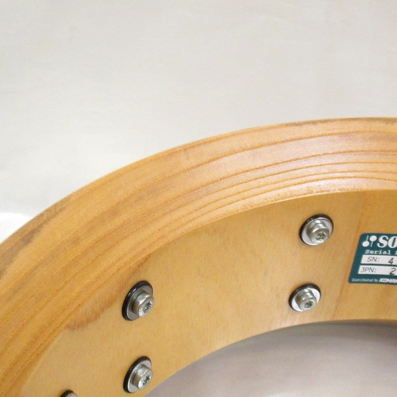 All of the zelkova logs are of the highest quality, carefully selected by Kyoichi Yamada, owner of Mishimaya Musical Instruments, a Japanese musical instrument workshop in Niigata. Only zelkova trees over 100 years old from the cold regions of northern Japan, harvested specifically for this snare drum, are used.