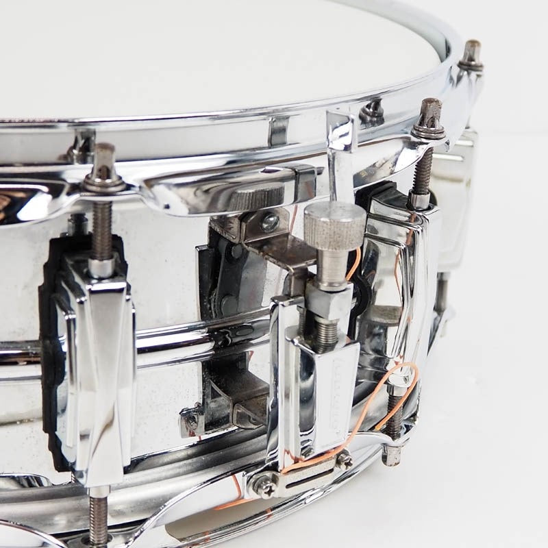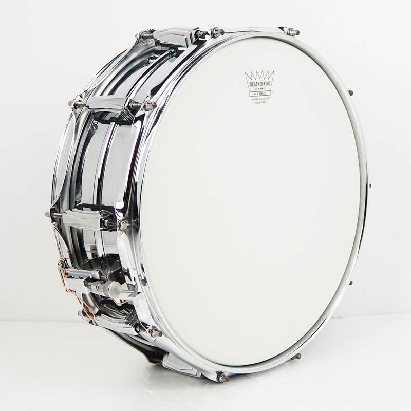 Shell: Aluminum, Chrome Finish Hoop: 2.3mm Steel Triple Flange Hoop/10 Tension Lug: Imperial Lug Strainer Switch/Butt: P-85/P-33
