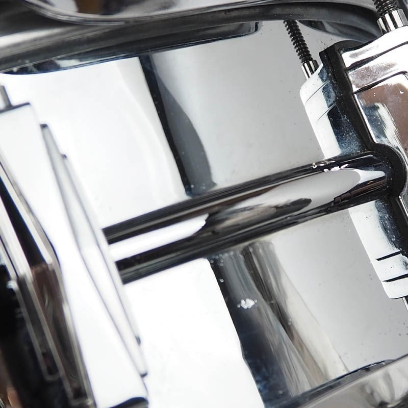 The seamless shell is made from USA-made aluminum with chrome plating, producing a bright and vibrant sound with a perfectly balanced crisp attack and shell resonance.