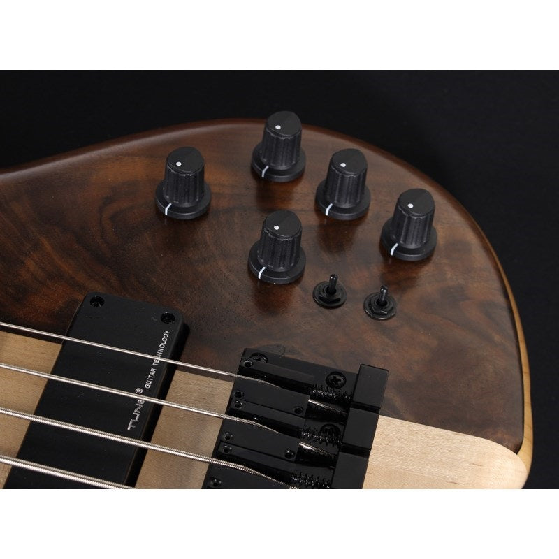 This newly arrived model is a 4-string guitar crafted from Claro walnut with a beautiful radial grain on the body and headstock. While the original model featured a multi-layer laminate body, this model features a simple alder back, further enhancing its value and value for money. It boasts a robust three-piece maple neck-through construction, an ebony fingerboard, versatile series/parallel/coil tap controls for each pickup, and the renowned low-noise GZP-2 circuit, all of which contribute to a rich, luxurious sound.