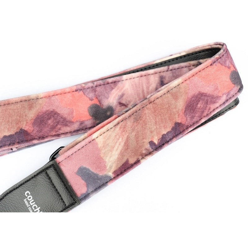 This limited edition floral guitar strap is crafted from vintage materials, using 90s floral fabric and finished in a dark, vintage-inspired finish with matte black hardware and a black backing.