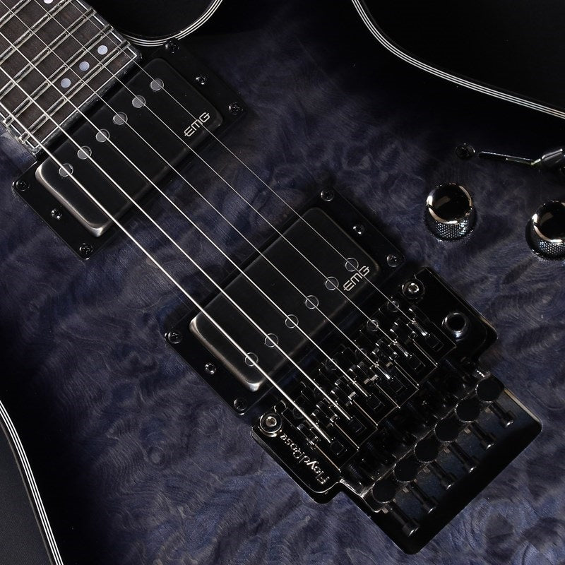 This high-spec Hellraiser, the flagship model of the Schecter Diamond Series, is now available with the latest EMG pickups. The neck boasts a moderate thickness and jumbo-sized 24 frets for superior playability and a rich tone. The quilted maple top and mahogany back body boast a luxurious, crisp tone, and the set-in joints provide a versatile feel. The tuning machines and bridge feature locking pegs and a bridge for ultimate versatility. The EMG pickups are active models "EMG-57" and "EMG-66," featuring brushed black chrome covers and pole pieces. Combining looks, sound, and playability, this is a must-have for metal players!