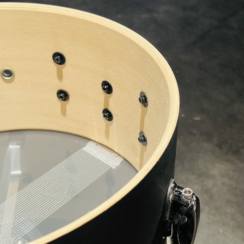 This snare drum features a composite shell made of birch and basswood, which is characterized by its rich resonance and powerful sound. It's an affordable snare drum. The shell color is a subdued, exclusive "Weathered Black" (matte black). While it appears to be solid black in the photo, the wood grain is visible, creating a chic finish. This 13x6.5 snare drum features a die-cast hoop for excellent sound pressure and projection, making it a great choice for a wide range of players, despite its low price.