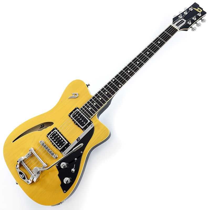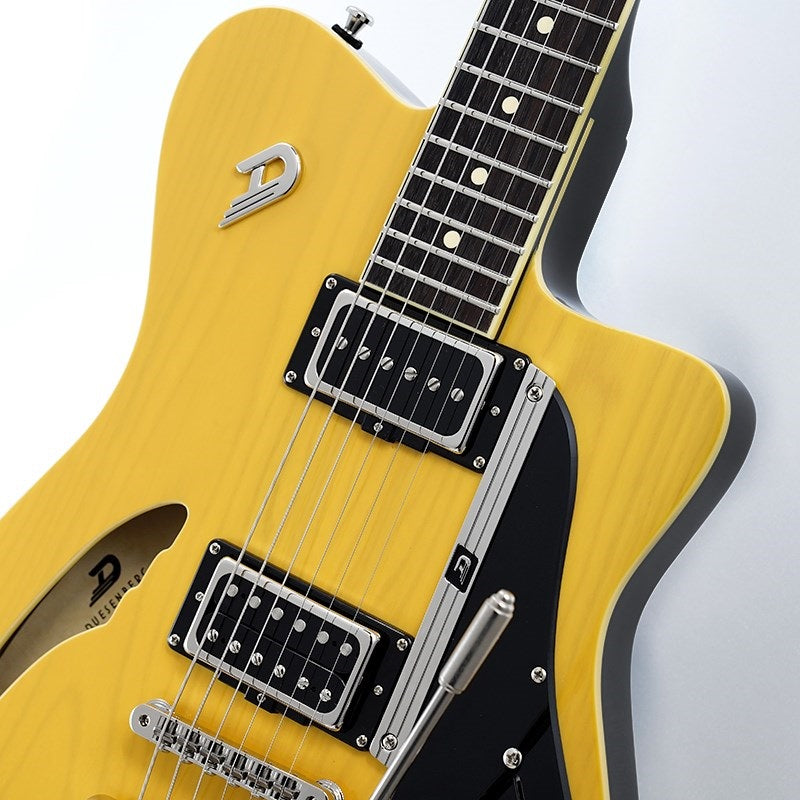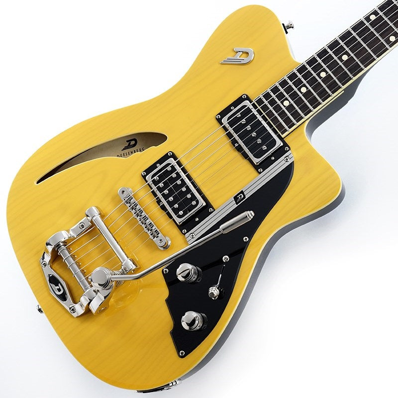 The solid alder hollow body and maple neck create a distinctive sound with a sense of airiness. The pickups are Duesenberg's signature Domino P-90 and Grand Vintage Humbucker. The simple controls—one volume and one tone—allow for intuitive sound shaping. This unique model offers both a unique sound and a unique look, so be sure to get your hands on one!