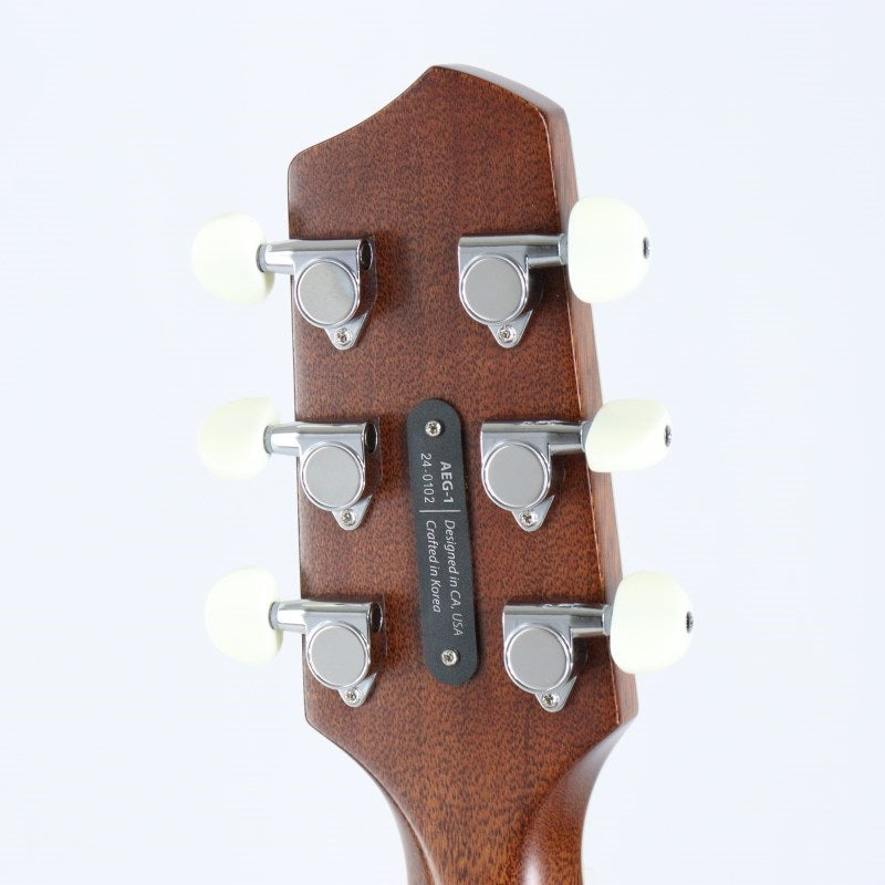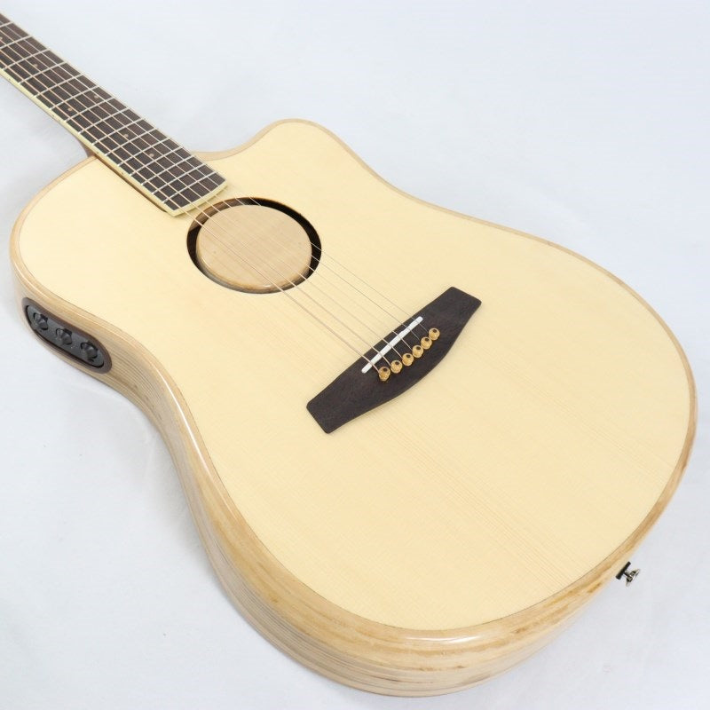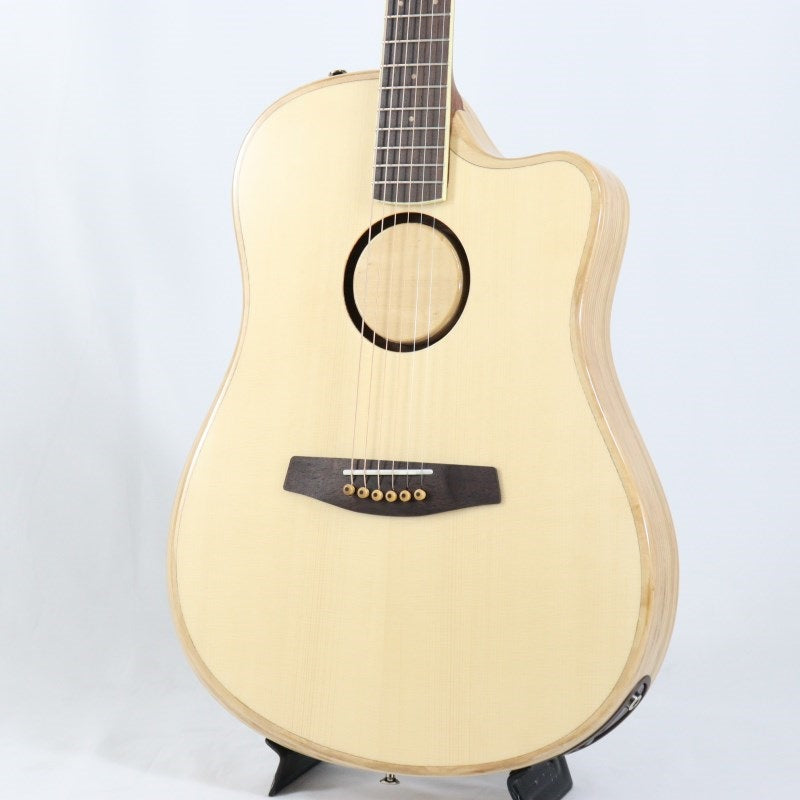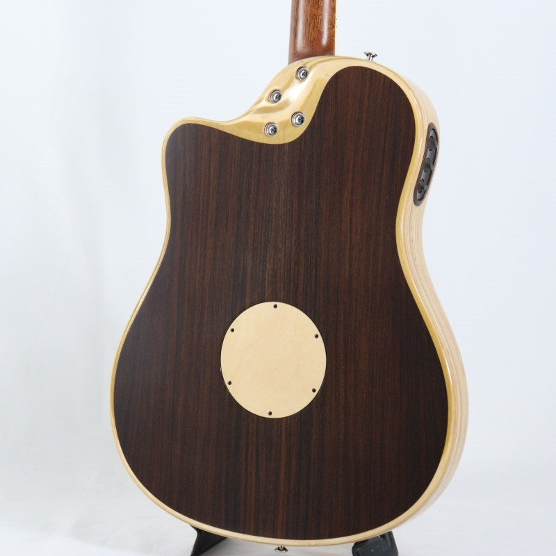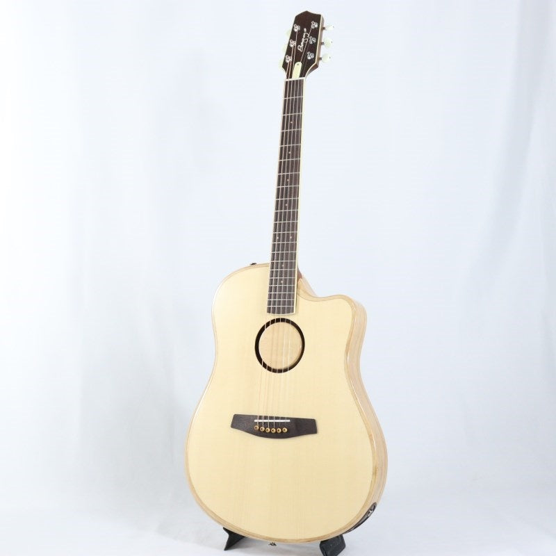 While a thin body often sacrifices tone and response in acoustic guitars, this model's innovative approach preserves acoustics and response while delivering a deep, warm, and rich acoustic sound never before achieved in an acoustic-electric guitar. The natural-colored top is made of Engelmann spruce, the back is Indian rosewood, and the sides are layered poplar. The layered poplar was chosen for its tonal balance, strength, and weight, making it a unique approach.