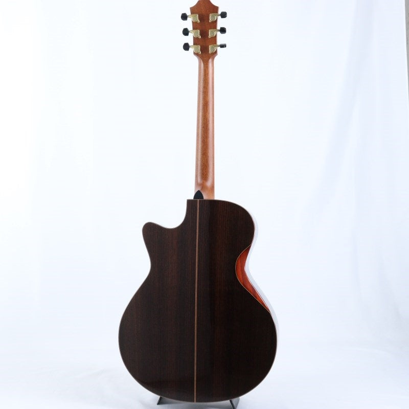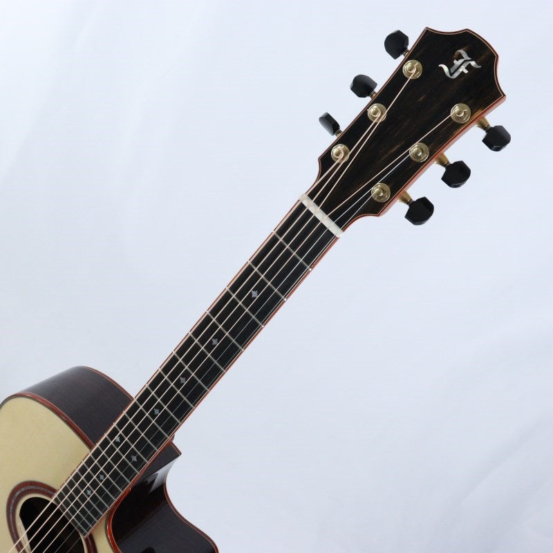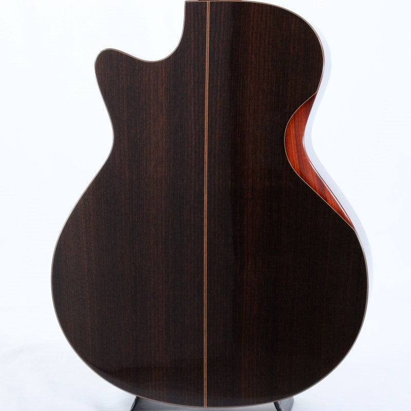 The top is made of Engelmann spruce and the back and sides are made of Indian rosewood.