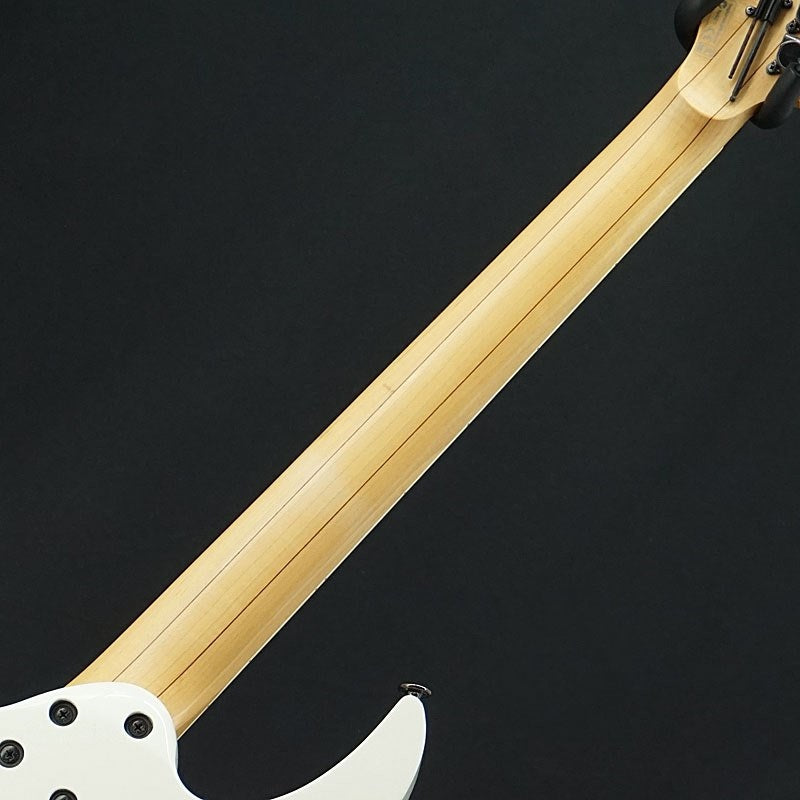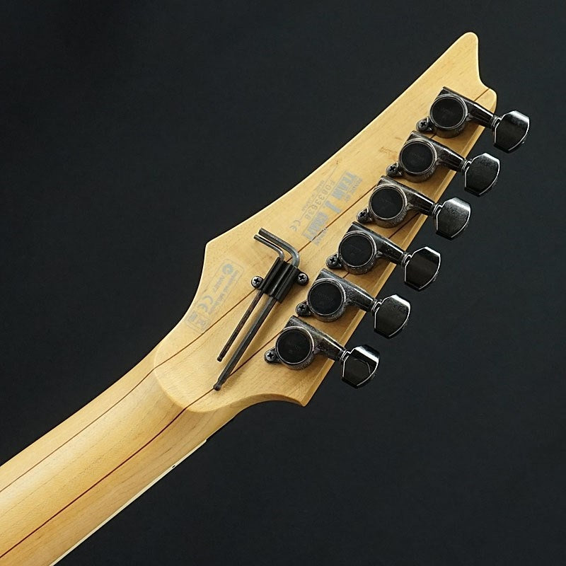 The Edge-Zero tremolo, developed for the RG, utilizes the traditional knife-edge style but employs the Zero-Point System, ensuring the bridge is always centered. Even with a floating setting, even a broken string won't disrupt the tuning of the other strings, ensuring stable tuning even on stage. It also significantly reduces stress when changing strings or tuning. This is a new Ibanez concept that achieves greater stability while retaining the wide adjustable arm action unique to locking tremolos.
