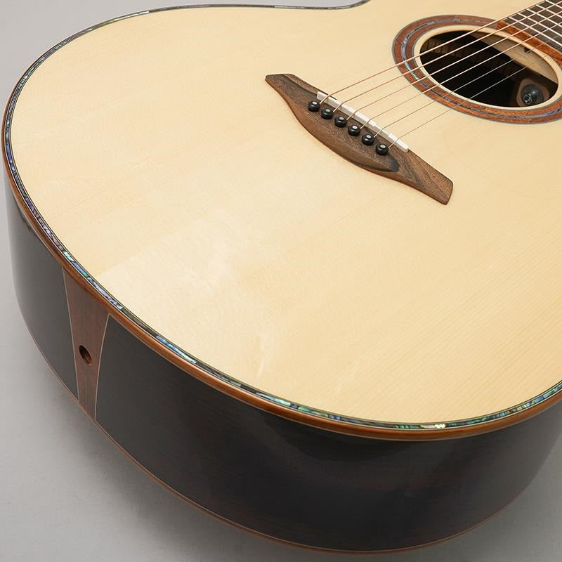 The top is made of master-grade Alpine spruce, and the back and sides are made of master-grade Indian rosewood.