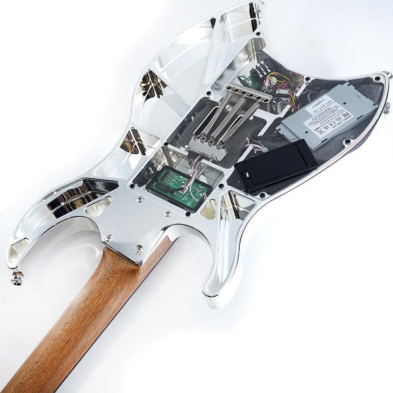 We have installed the perfect match of the BOSS Divided Pickup Kit GK5-KIT-G6 for the GM-800 & VG-800 guitar synthesizers to a chrome-painted prototype of the EVO 0202Z Trem, which has a skeleton structure.