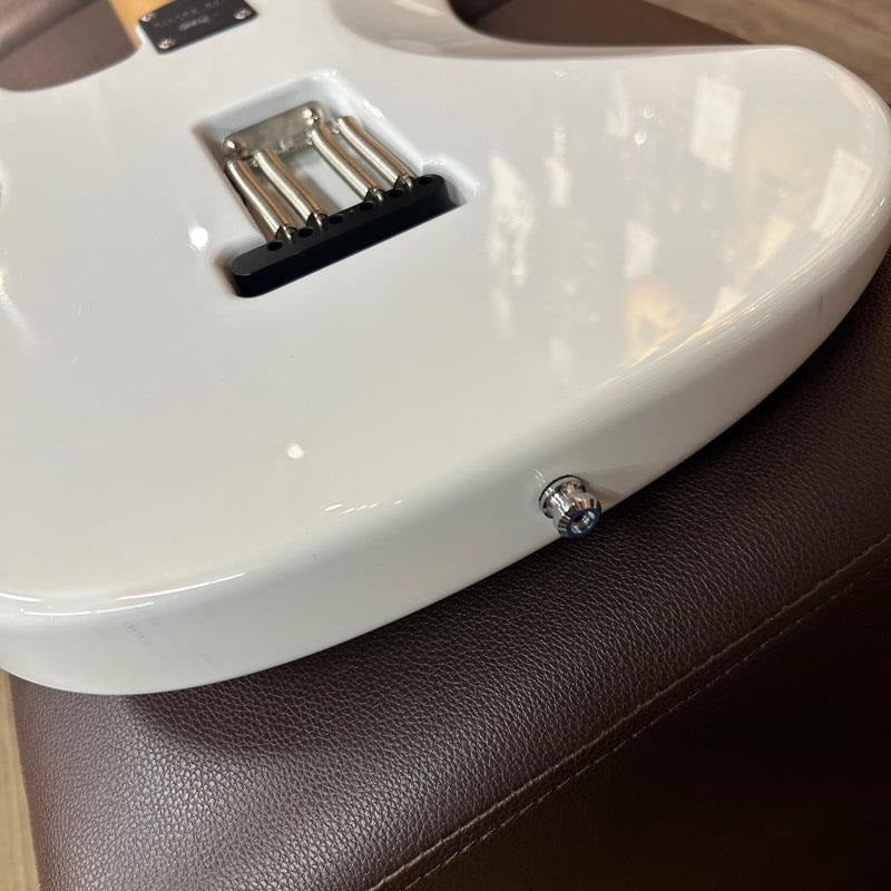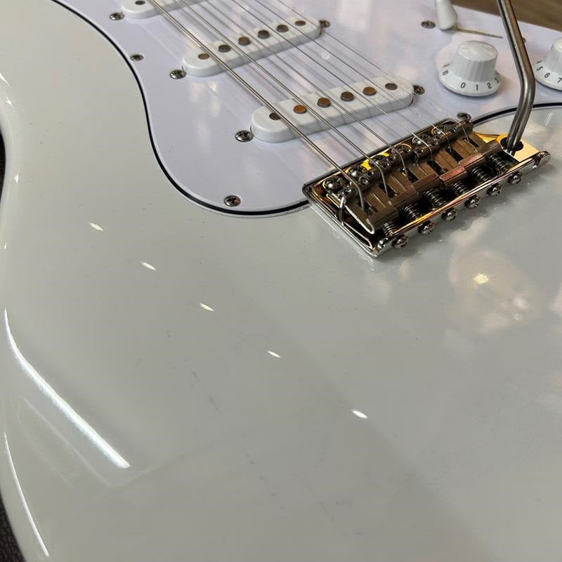 The condition of this guitar is somewhat affected by minor dents and scratches, tarnish on some parts, discoloration on the body top and end paint, a crack on the pickguard, and a repositioning of the ground wire on the tremolo spring hanger. The frets remain at about 70% of their original height, and there are no issues with playability, including the neck and electrical components, making this a guitar you can enjoy for years to come. While a relatively new model within the PRS family, the Silver Sky is an overwhelmingly popular choice. Don't miss this opportunity!