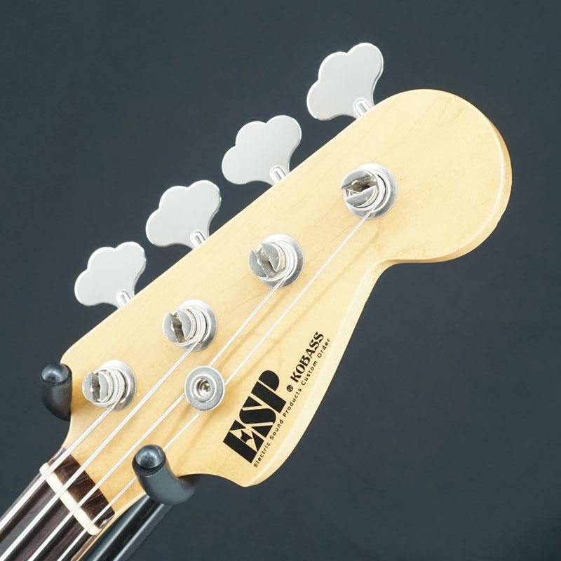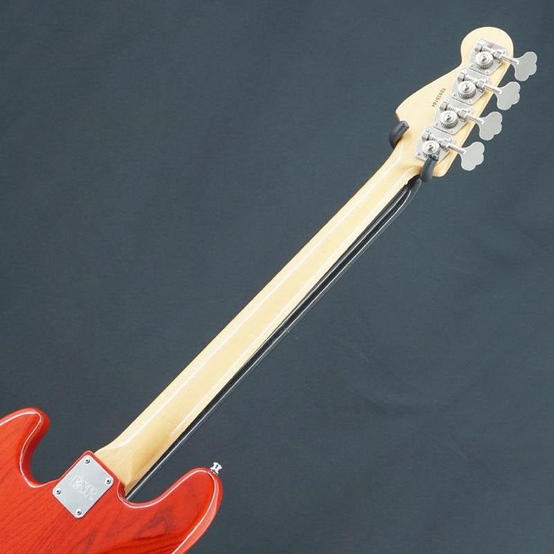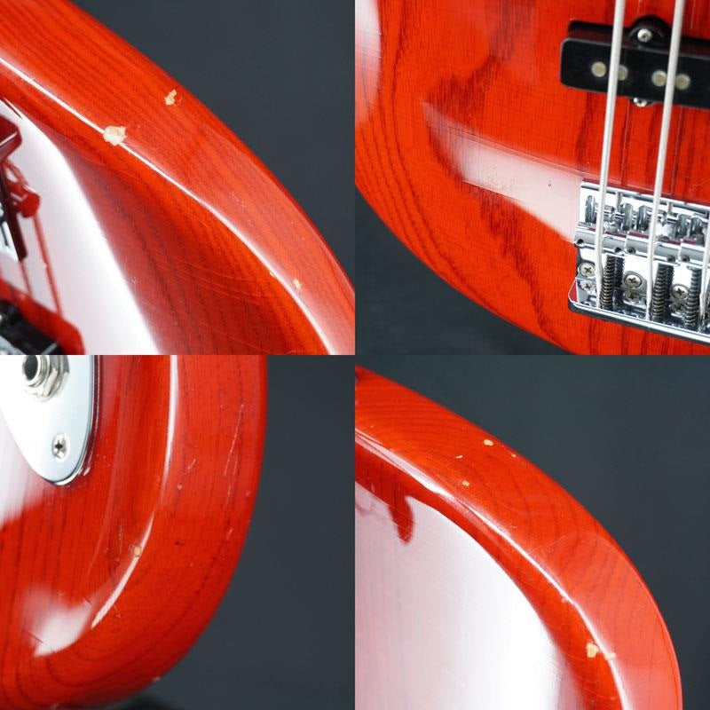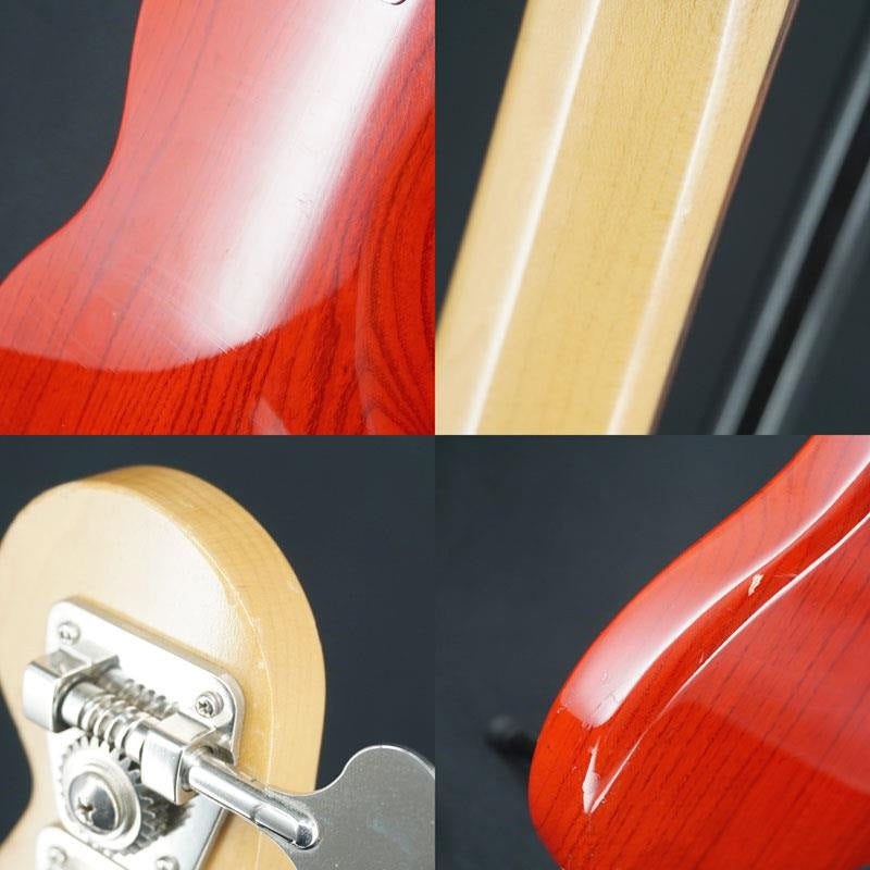 This is a custom-made bass made in 2009. It features an ash body and rosewood fingerboard, and the crispness of the ash matches the mildness of the rosewood fingerboard, creating a playable sound. Judging from the cracks on the body and the paint on the headstock, it is likely lacquered.