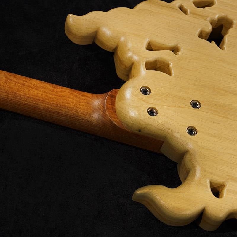 The "Raijin" and "Fujin" are no longer just guitars, but instruments that showcase the art of woodworking techniques on a level comparable to that of a work of art. Their greatest feature is the vibrant expression of the wood, which seems to be alive. The body is made of limba wood (korina), which is rare and extremely difficult to process. Lightweight and with excellent acoustic properties, they offer great potential in both appearance and sound. While the body shape is large in concept, it never sacrifices performance as an instrument, and that is the essence of this model.