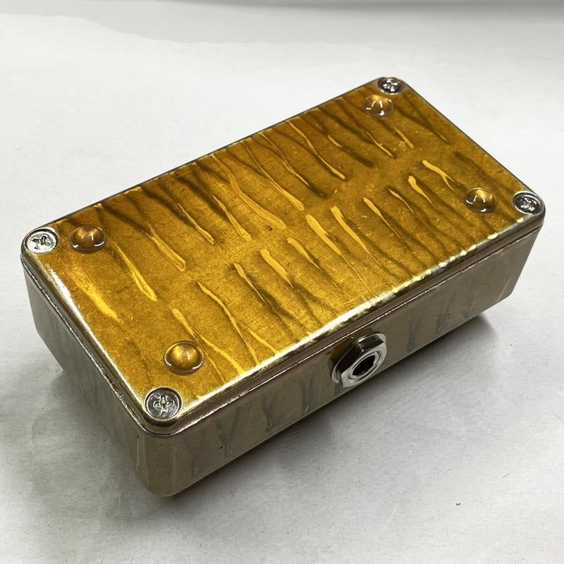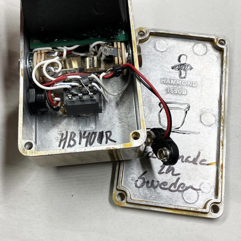 The HBOD is an overdrive pedal that features overwhelming dynamic response, even within a pedal system. With headroom and frequency response reminiscent of an old, small amp, it can produce the tone of a large amp recorded with a small amp. It can also be placed anywhere in a complex pedal system, allowing it to function optimally.