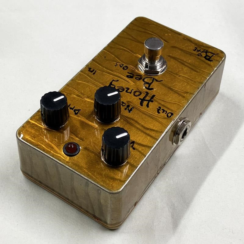 The HBOD is an overdrive pedal that features overwhelming dynamic response, even within a pedal system. With headroom and frequency response reminiscent of an old, small amp, it can produce the tone of a large amp recorded with a small amp. It can also be placed anywhere in a complex pedal system, allowing it to function optimally.