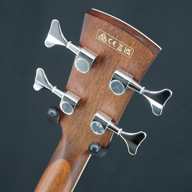 It uses the same nut width as the Ibanez New Yorker Model guitar (AVN). Compared to a regular acoustic bass, it has a much lighter string touch and a softer tone, but the strings tend to vibrate more, meaning they can't handle heavy picking, whether played with fingers or a pick.