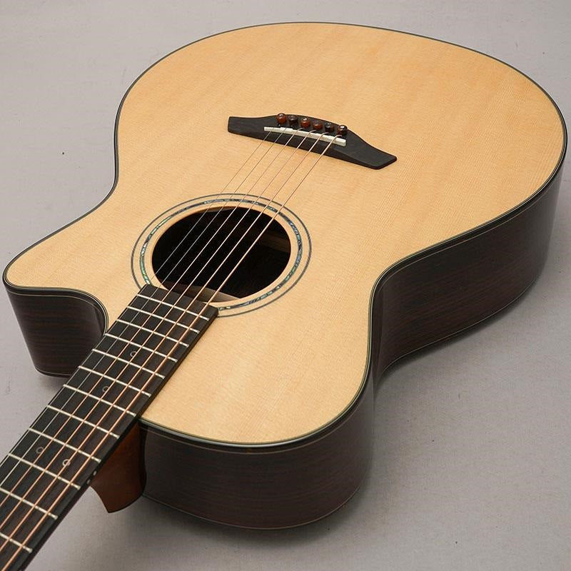 The top is made of AAA grade Sitka spruce, and the back and sides are made of AA grade Indian rosewood.