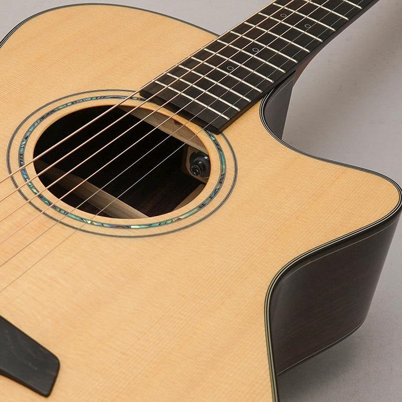 The design, which has been carefully crafted down to the smallest detail, features a thin abalone rosette, eclipse-type position markers, and tortoiseshell binding and bridge pins, giving it an elegant and calm European feel.
