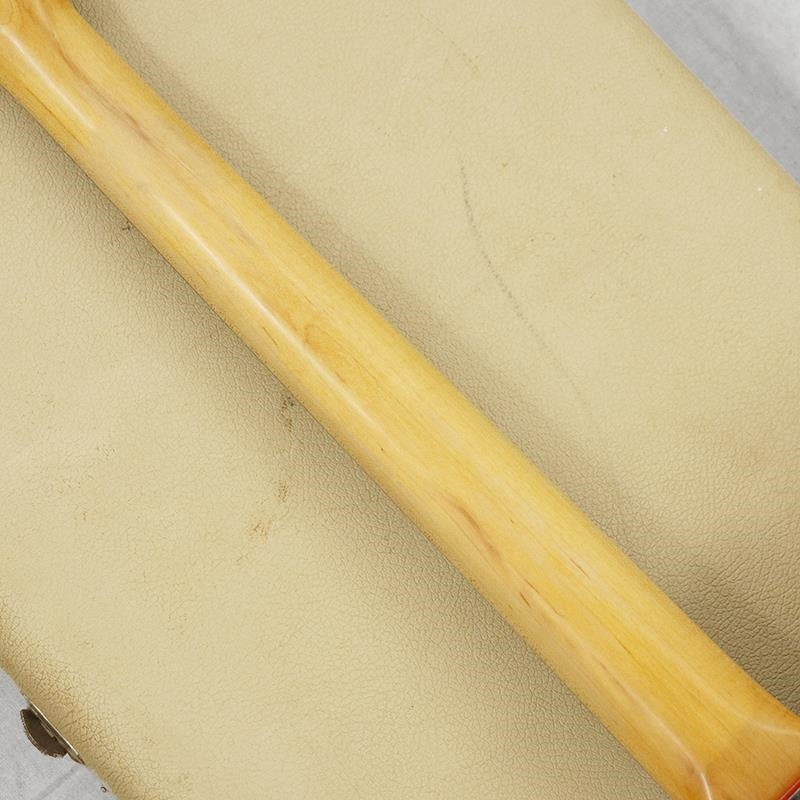 The controls are comprised of two sections, familiar to Jazzmasters: a 3-way pickup selector, master volume, and master tone, and a neck (front) pickup preset mode switch, preset volume, and preset tone. The pickups retain their original black bobbins. While the preset pots have been replaced, the other control parts remain in their original condition. The wide, flat coil structure produces a rich, deep tone, despite being a single coil. The lows are not too loose, the mids have a distinctive airiness, and the highs are pleasantly smooth. The main control provides a wide range of tones, from a clean tone with a rich yet clear sound to a lustrous crunch, fully capturing the sound of surf music, instrumentals, and early rock/pop music of the time. The preset mode produces an even warmer, fuller tone, creating a unique mood for chord work and mellow phrases.