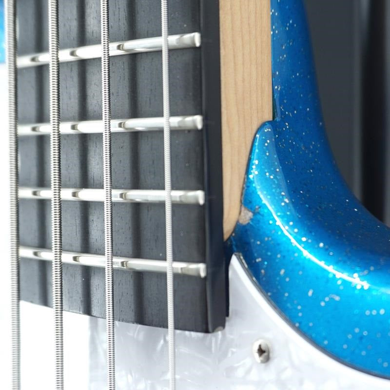 This is a model by Ikuzone (Ikuzo Baba), the original bassist of the legendary hybrid rock band Dragon Ash. He led the band with his powerful groove and has used a number of models, but this ESP-manufactured model features an alder body, ebony fingerboard, a simple single humbucker, and an eye-catching sparkling blue color.