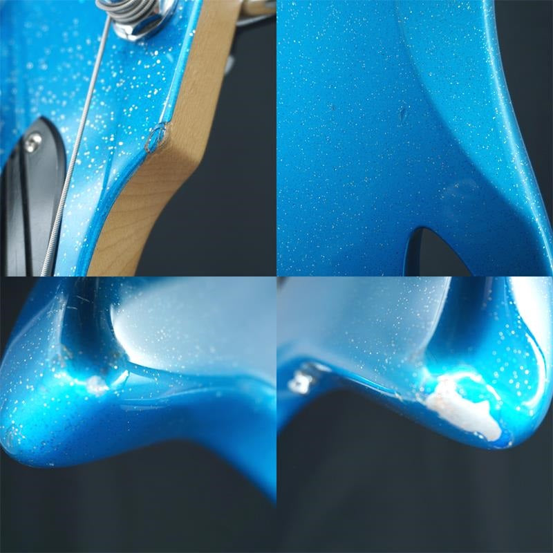 There are paint chips on the body and neck joint, and scratches and dents all over, so it shows signs of use, but it does not affect playability.