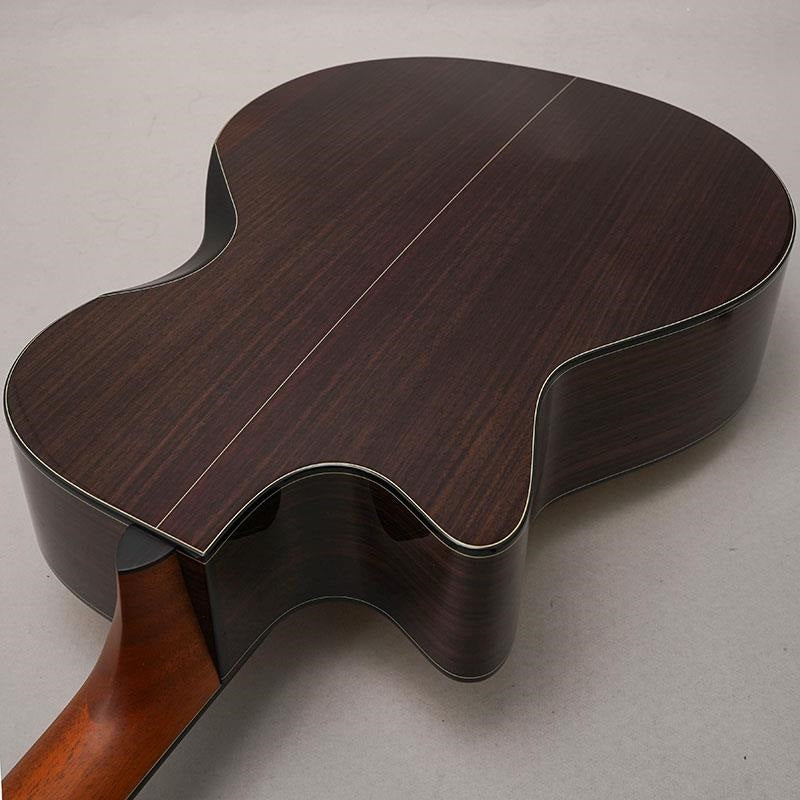 The top is made of AAA grade Sitka spruce, and the back and sides are made of AA grade Indian rosewood.