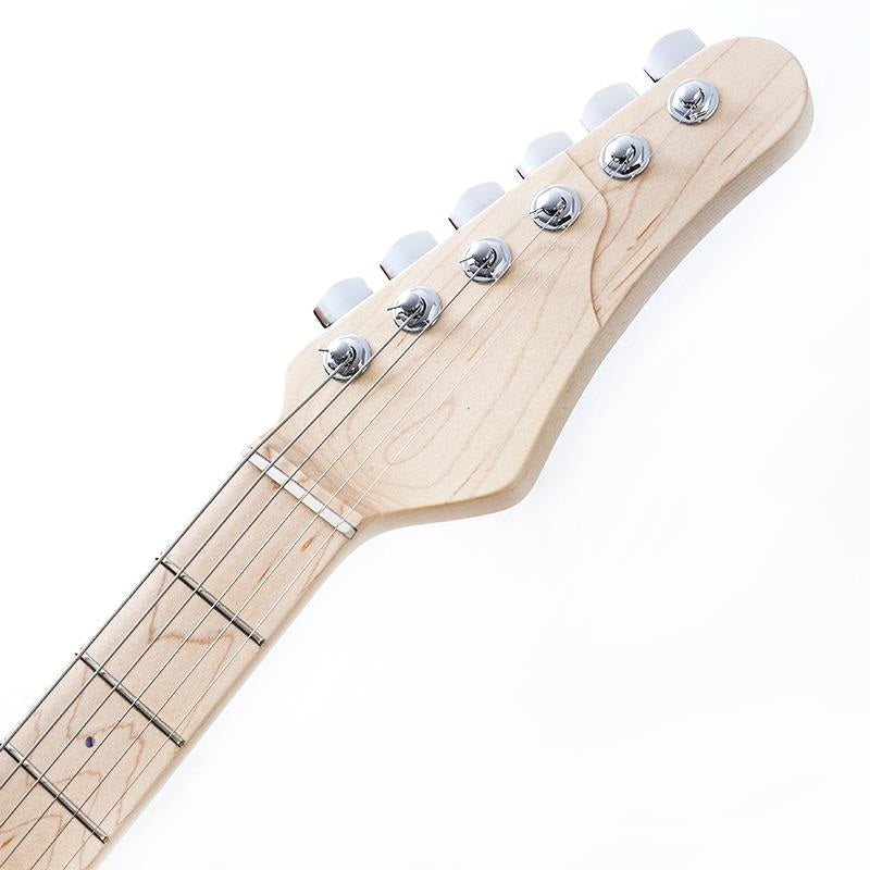 The head surface has a step to ensure tension on the 1st and 2nd strings, the knobs and escutcheon are machined from duralumin, and of course the tremolo block, etc. are all machined from solid wood!