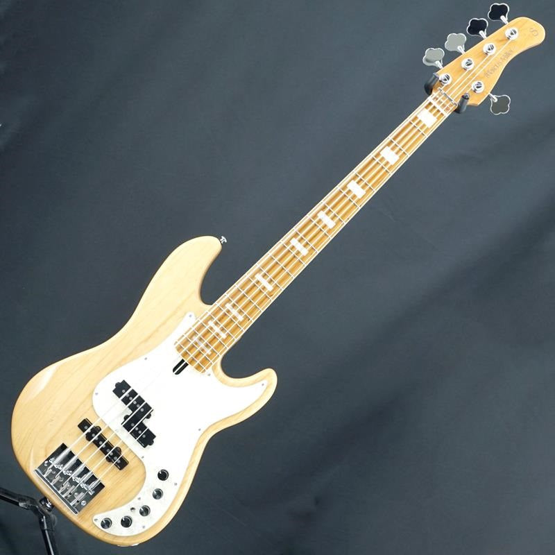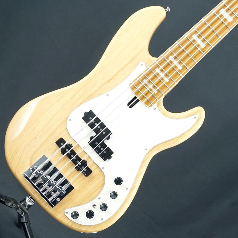 This guitar features a PB-shaped swamp ash body and a roasted maple neck for a vintage feel and durability. It's equipped with a 3-band EQ with adjustable mid frequencies, and the PJ-style pickups deliver a powerful midrange punch, including a low B on the 5th string. It's a versatile guitar with a mellow sound that's perfect for a wide range of music.