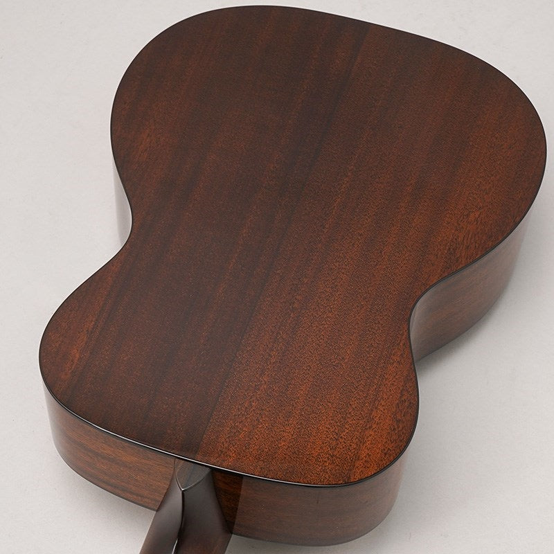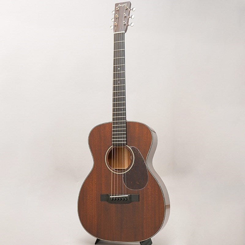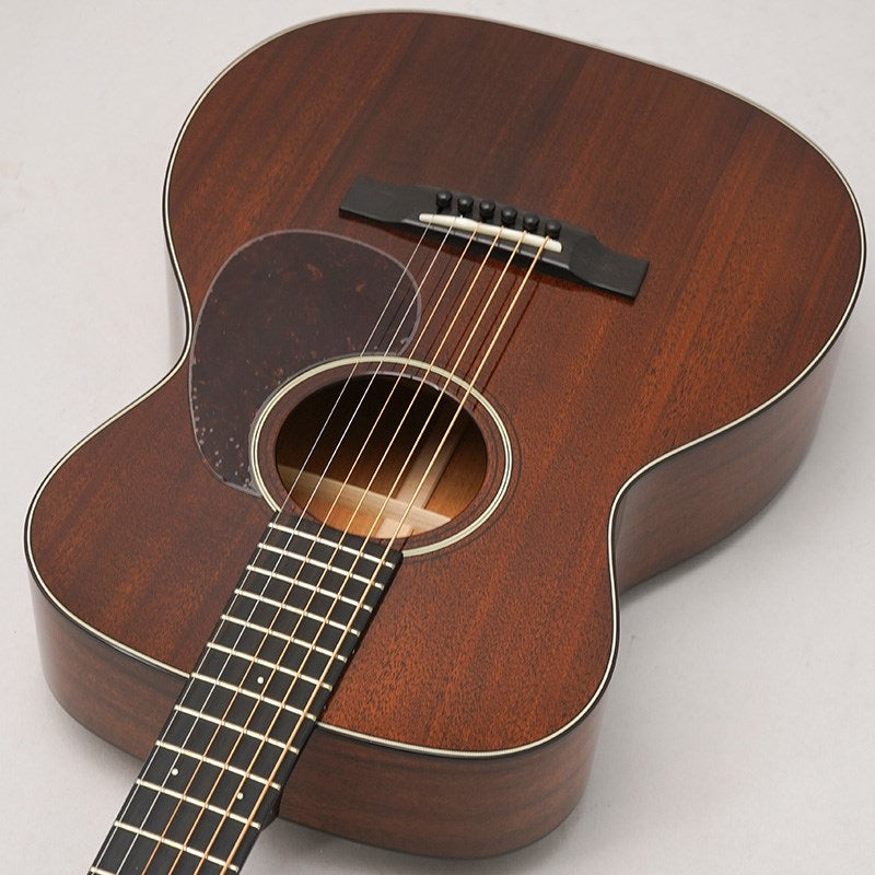 This instrument, the "Hog Top 0," is a small, single-sized guitar with an all-mahogany body.